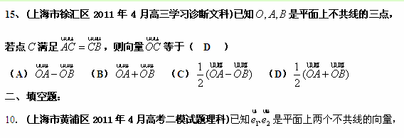 上海市各地市2011年高考最新联考分类汇编(7)平面向量