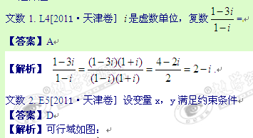 2011年普通高等学校招生全国统一考试天津卷(数学文)解析版缺解答题解析
