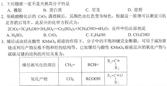江西省赣州市10-11学年高二下学期期末考试(化学)(扫描版)