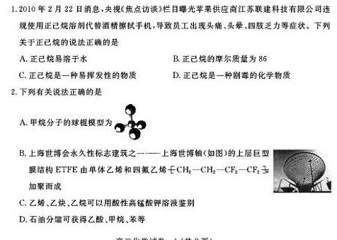 江西省上饶市10-11学年高二下学期期末统考试题(化学) 扫描版