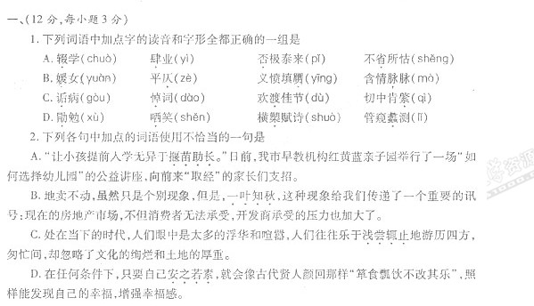 四川省德阳市10-11学年高一下学期期末考试(语文)(扫描版)