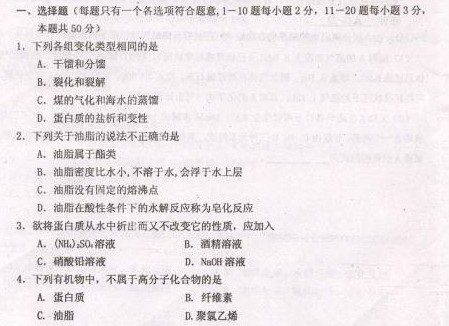 四川省雅安市10-11学年高二下学期期末考试(化学)扫描版