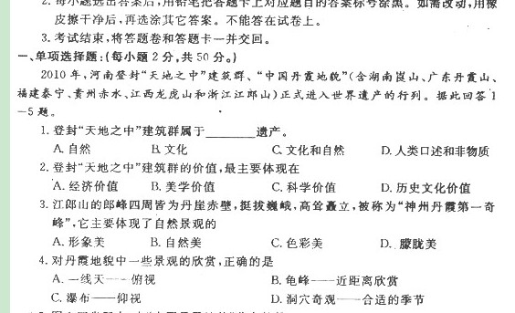 河南省洛阳市10-11学年高二下学期期末质量检测(地理)(扫描版无答案)