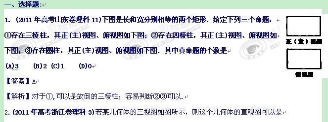 2011年高考试题解析数学(理)分项版之专题8-立体几何