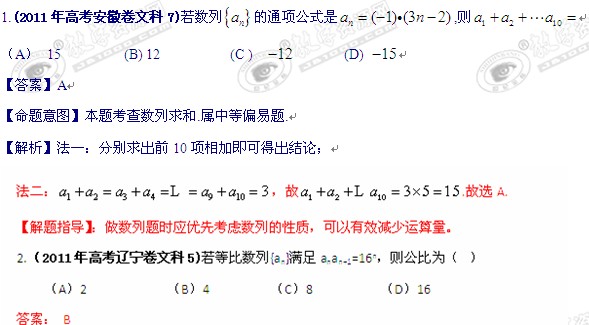 2011年高考真题解析数学(文科)分项版04数列