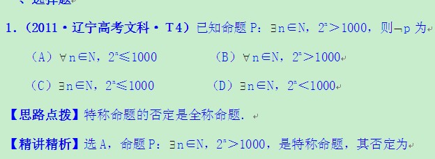 金榜2011高考真题分类汇编:考点3简单的逻辑联结词、全称量词与存在量词(新课标地区)