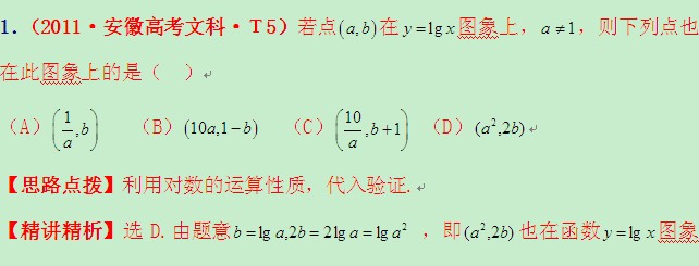 金榜2011高考真题分类汇编:考点6指数函数、对数函数、幂函数(新课标地区)