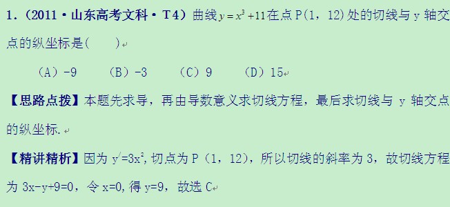 金榜2011高考真题分类汇编:考点9变化率与导数、导数的计算(新课标地区)