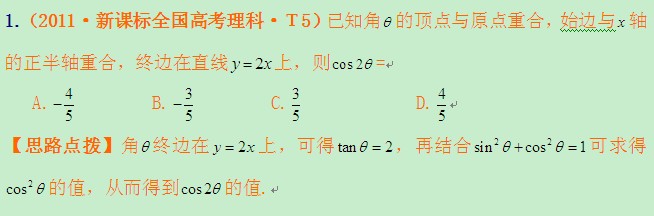 金榜2011高考真题分类汇编:考点12任意角和弧度制及任意角的三角函数、三角函数的诱导公式(新课标地区)