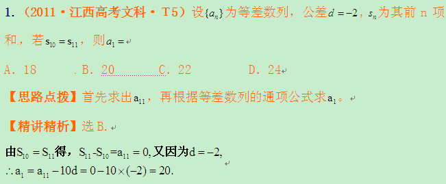 金榜2011高考真题分类汇编:考点22等差数列及其前n项和(新课标地区)