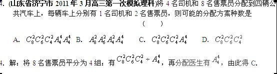 2011年山东省十七地市高考数学模拟试题分类汇编:排列组合