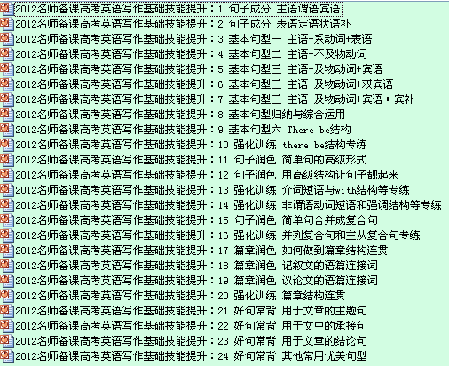 打包下载:2012名师备课高考英语写作基础技能提升:1-24汇总
