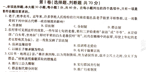 江苏省徐州市2011-2012学年高一上学期期中考试(历史)暂无答案扫描版