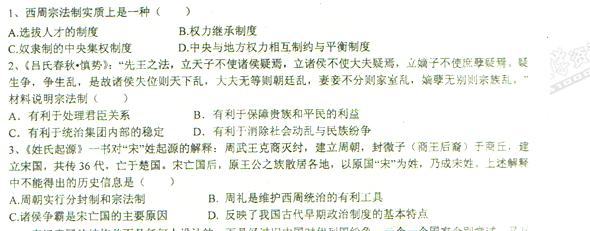 广东省揭阳第一中学2011-2012学年高一上学期期中考试(历史)扫描版