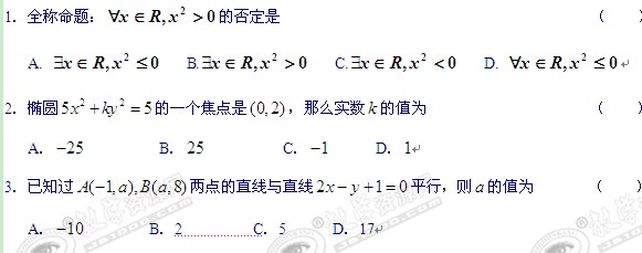 黑龙江哈九中11-12学年高二上学期期中考试(数学文)缺答案