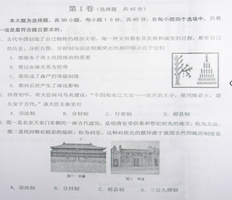 山东省泰安市11-12学年高一上学期期中考试试题(历史)扫描版