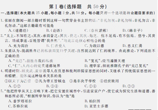 安徽省泗县双语中学11-12学年高二上学期11月月考(历史)扫描版