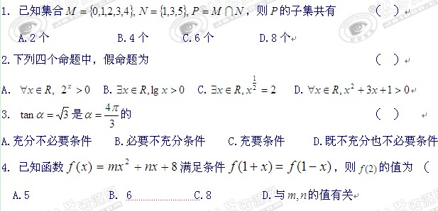 云南省楚雄州东兴中学2012届高三上学期期中考试(数学文)(无答案)