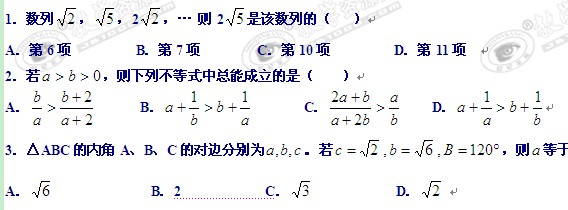 宁夏中卫市海原一中11-12学年高二上学期第一学段考试(数学)(无答案)