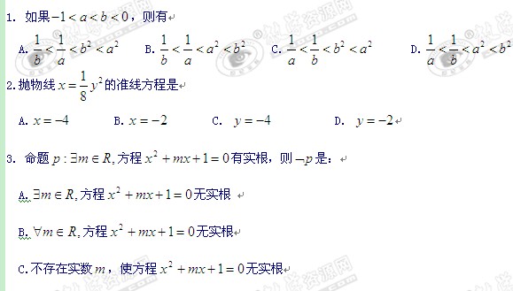 辽宁省庄河六高11-12学年高二上学期第三次月考(数学理)