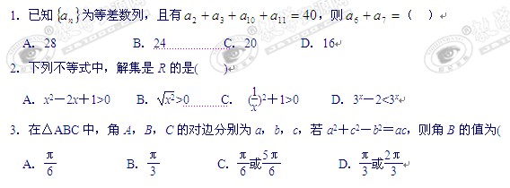 福建省厦门市翔安第一中学11-12学年高二上学期期中考试(数学理)