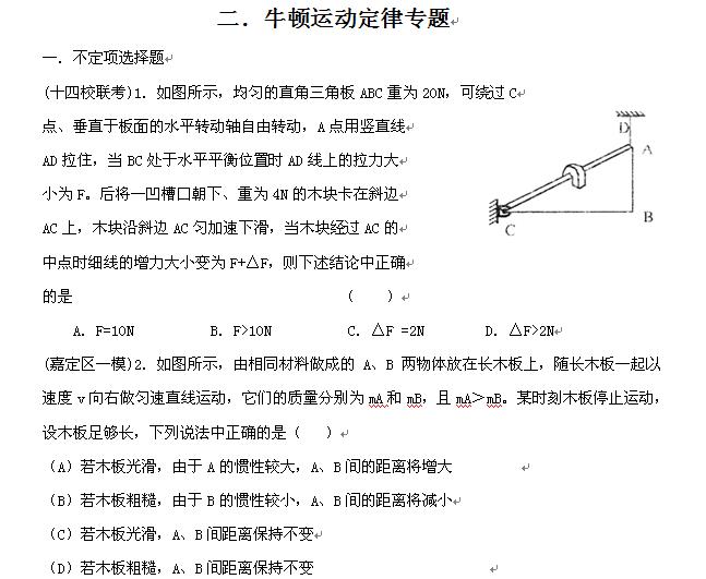 上海市2009届高三模拟试题精编——牛顿运动定律