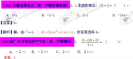 2012届高考数学(文)二轮复习名校试题精选分项解析:第一辑_专题14复数、推理与证明