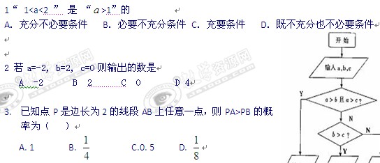 云南省滇池中学11-12学年高二上学期期末考试(数学文)