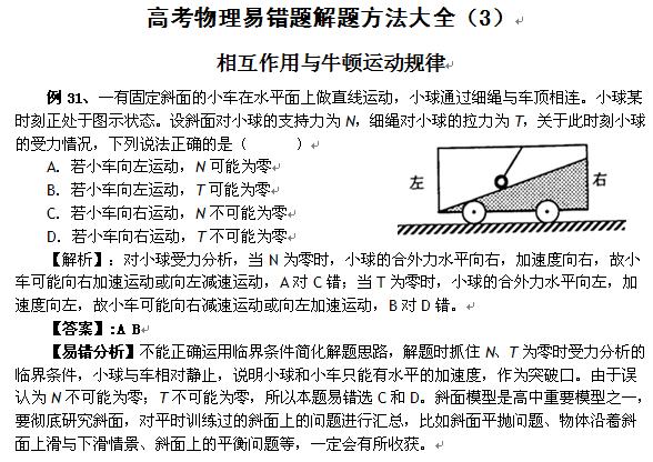 高考物理易错题解题方法大全(3):相互作用与牛顿运动规律