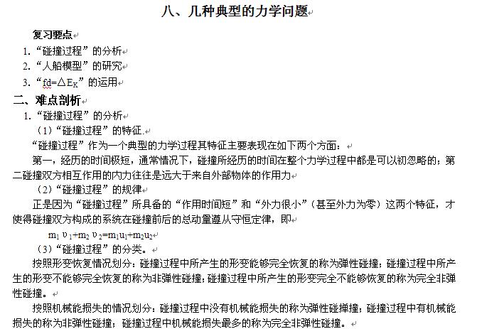 高考总复习物理资料:几种典型的力学问题