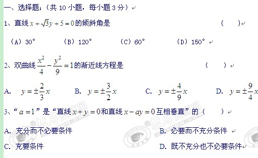 浙江省杭州市萧山九中11-12学年高二寒假作业(数学理)(无答案)