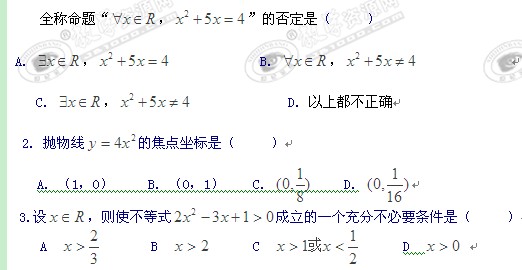 河北省南宫中学2011-2012学年高二11月月考(数学理)(无答案)
