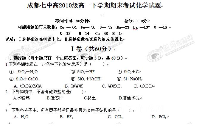 四川省成都七中08-09学年高一下学期期末考试(化学)