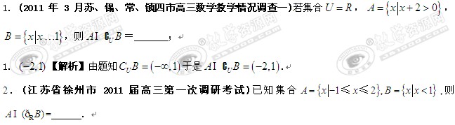 江苏省各地市2011年高考数学最新联考试题分类大汇编(1) 集合