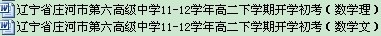 【打包下载】辽宁省庄河市第六高级中学11-12学年高二下学期开学初考(数学文理卷)