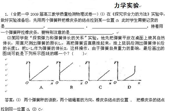 物理:2010届高考一轮复习物理专题训练——力学实验