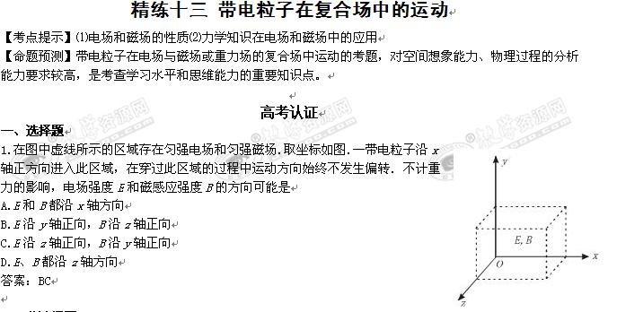 物理:2010届高考物理一轮复习精练十三---带电粒子在复合场中的运动