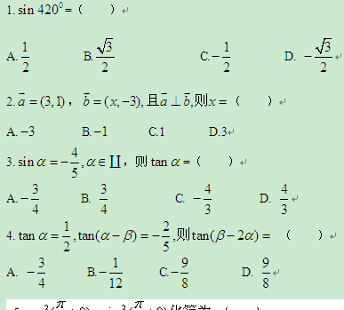 四川省射洪县射洪中学11-12学年高一下学期第一次月考试题(数学)缺答案