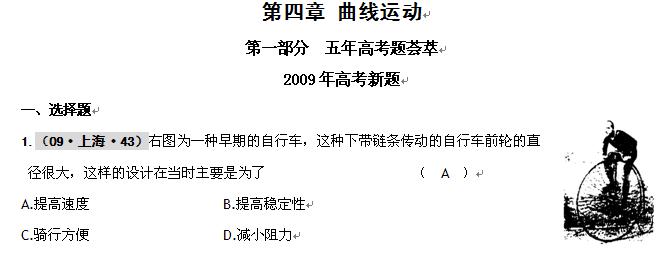 物理:2010届高考复习五三精品题库:第四章 曲线运动