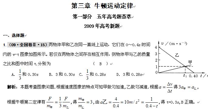 物理:2010届高考复习五三精品题库:第三章 牛顿运动定律