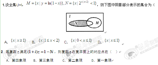 河北省张家口市第一中学2012年高考预测卷(数学文)