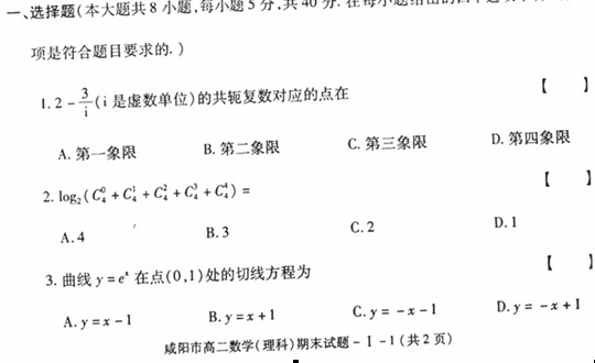 陕西省咸阳市11-12学年高二下学期期末质检(数学理)扫描版缺答案