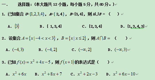 四川省雅安中学12-13学年高一10月月考试题(数学)