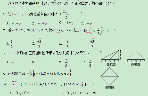安徽省合肥一中等六校教育研究会2013届高三2月测试(数学文)
