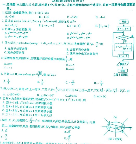 2013年普通高等学校招生全国统一考试浙江卷(数学理)扫描版含答案