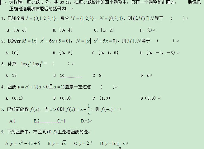 山东省淄博市2013-2014学年高一上学期期末考试题(数学)