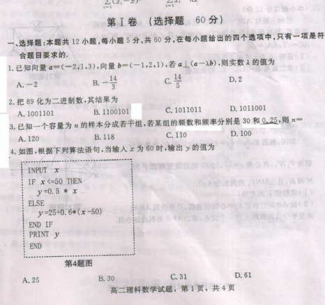 河北省邢台市2013-2014学年高二上学期期末考试(数学理)扫描版