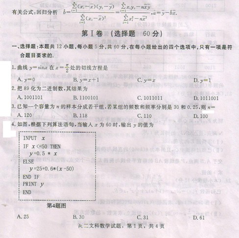 河北省邢台市2013-2014学年高二上学期期末考试(数学文)扫描版