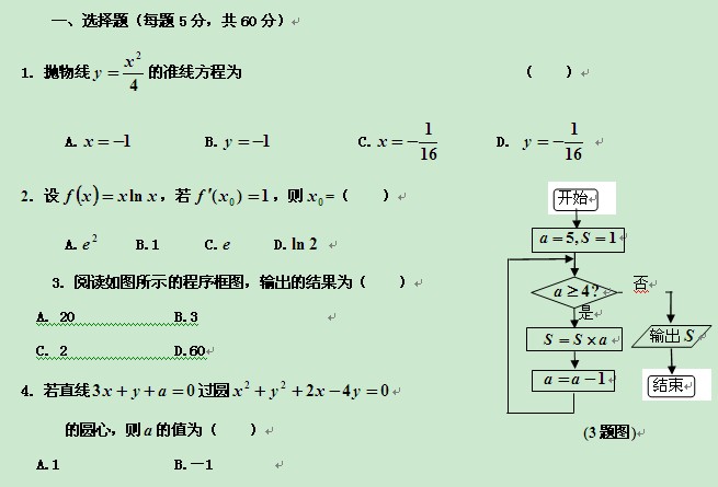 吉林省长春市十一中2013-2014学年高二上学期期末考试(数学文)