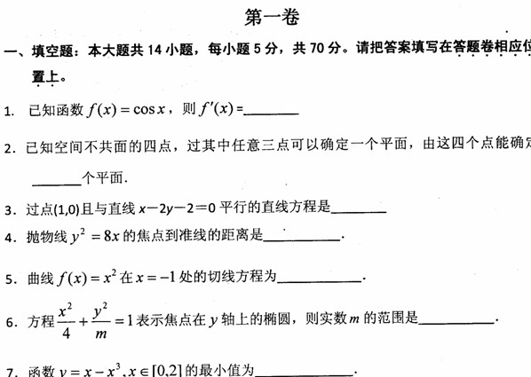 江苏省淮安市淮阴区2013-2014学年高二上学期期末调查(数学)扫描版